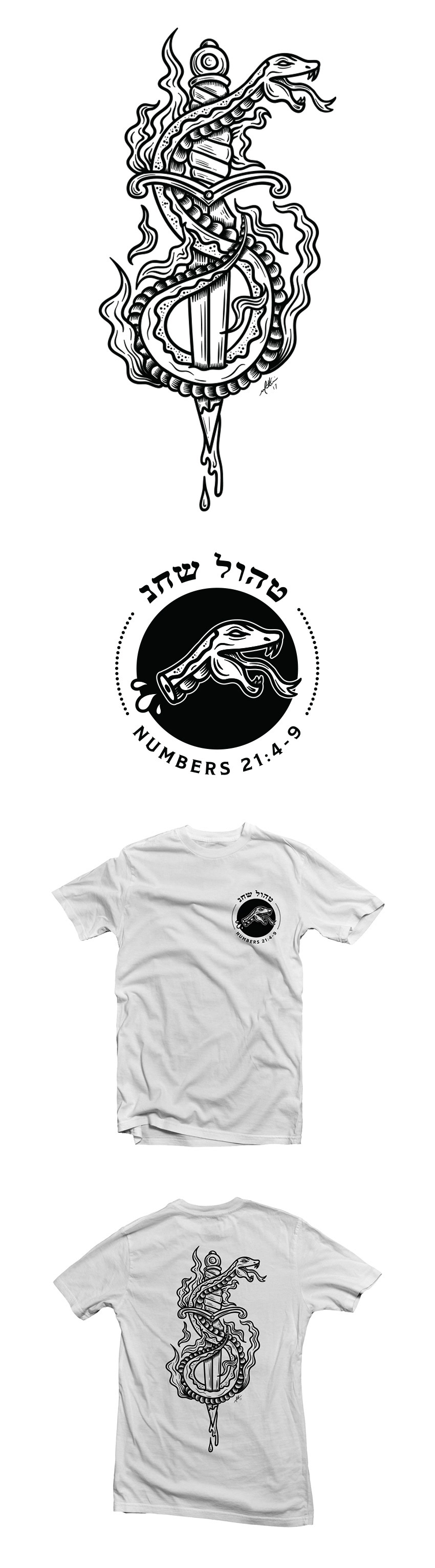 Fiery Serpent is a t-shirt illustration for my personal brand. This piece was inspired by a story in the Bible found in Numbers 21:4-9. The Israelites were rescued from Egypt, but where continuously complaining during their long voyage to the promise land. God sent venomous snakes to bite and attack them for their lack of faith. However, their leader, Moses, pleaded with the Lord and saved the Israelites through reconciliation and faith in God's plan. I think we can all relate. No matter the situation, God is in control and we can rest in Him.
